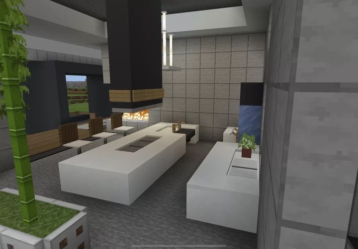 A modern house build (image via minecraft). Here you’ll find hundreds of ways to furnish and decorate your minecraft buildings. Welcome to our collection of great minecraft furniture ideas, and minecraft interior design inspiration. Try this super sleek modern kitchen design. Minecraft table designs including minecraft desks, coffee tables, dining tables, and other great ideas to help you furnish the inside of your minecraft builds.